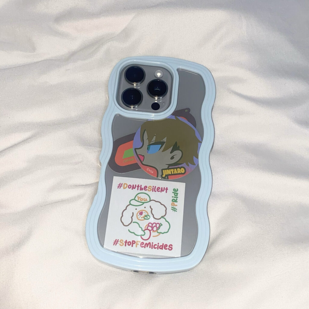 仕事の休憩中に配信をみる用のスマホスタンド。ポップな色が可愛いのと、小さく折り畳めるので持ち運びが楽。