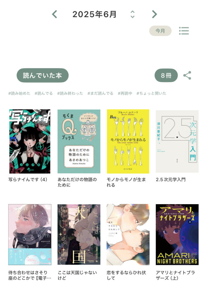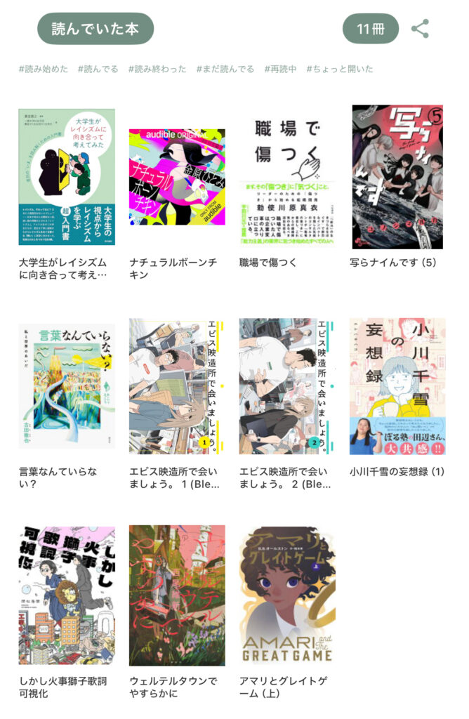 次は読んだ本と漫画。これは一覧の画像を作りました。漫画はBLとGL込みです。