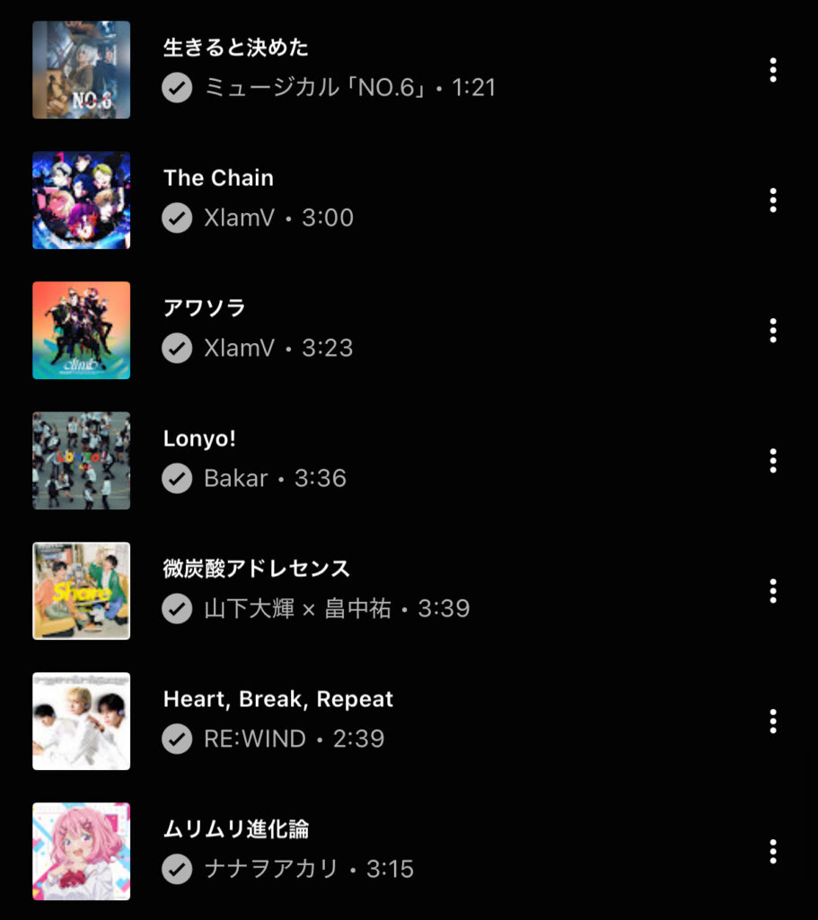 次は聴いた音楽です!見事にアニソンばっかりですが…。※そういえば最近Apple musicに変えました。